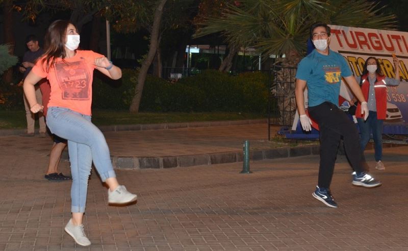 Manisa’nın Turgutlu ilçesinde 19 Mayıs Atatürk’ü Anma, Gençlik ve Spor Bayramı kapsamında "Evde Kal Hareketsiz Kalma"etkinliği kapsamında Turgutlu Gençlik ve Spor İlçe Müdürlüğü görevlileri Atatürk Bulvarında vatandaşları balkona davet ederek şarkılar eşliğinde egzersiz yaptırdı.