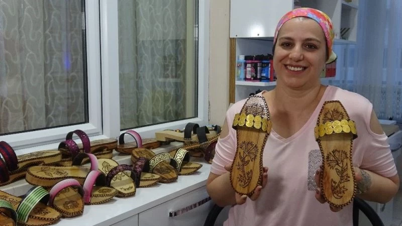 Tokat şehir merkezinde ikamet eden evli ve 2 çocuk annesi Sevgi Gürses, eskiye olan sevdası nedeniyle evinin balkonunu atölyeye çevirdi. Yaklaşık 700 yıllık bir gelenek olan takunya üretimini günümüze göre güncelleyen Gürses, hobisini üretime dönüştürdü. Takunyaların kalıplarını sanayide biçtiren Gürses, balkondaki atölyesinde takunyaların üzerine çizdiği desenleri yakma tekniği ile işliyor. Bir birinden farklı desen ve motiflerle süslenen takunyalar yoğun ilgi görüyor. Hobi amaçlı başladığı el sanatına yoğun ilgi nedeniyle ticarete dönüştürdüğünü belirten Gürses, “Atölyemi evimde balkonumda oluşturdum. Biçme makinesini eve getirme imkanım olmadığı için takunyaları sanayide biçtiriyorum. Kalıbı biçtikten sonra lastiğini çivi ile çakıyorum. Ondan sonra zımparasını yaptıktan sonra desenini çizip ahşap yapma tekniği ile desenini çiziyorum. Son olarak da vernikleyerek bitiriyorum” dedi.