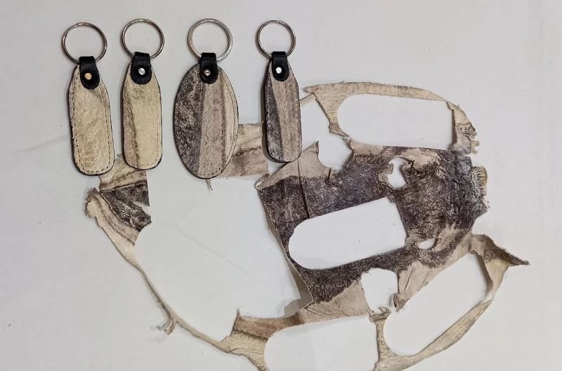 Özata, patentine başvurduğu çalışmaların sonunda yine balon balığı derisinden Alanya’daki bir deri ustasına cüzdan ve anahtarlık yaptırdı. Daha önce yaptırdığı kadın çantası kadar şık olan cüzdanda ise 3 balon balığının derisinden yapıldı. 6 kart haznesi ve tek hazneli para koyma bölümü olan cüzdanın dış kaplaması, balığın desen ve renklerini taşıyor. Sadeliği ile dikkat çeken anahtarlık da yine üretiminde kullanılan balon balığının derisindeki renkleri taşıyor.