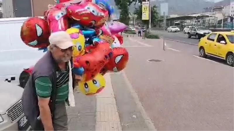 Bursa’da etkili olan şiddetli rüzgar, hayatı olumsuz etkiledi. İnsanlar caddelerde yürümekte zorluk çekerken, esnaf ise kapı önlerindeki malzemelerini içeri almanın telaşına düştü. Eline aldığı birkaç balonu satarak ailesini geçindirmeye çalışan bir vatandaşın ise fırtına ile imtihanı kameralara yansıdı. Elindeki balonların uçmaması için büyük çaba saf eden kişi, oturduğu taburenin ise sürüklenmemesi için ne yapacağını şaşırdı. Bir eliyle balonlar uçmasın diye sıkı sıkı tutan vatandaş, diğer eliyle de taburesine sahip çıktı.