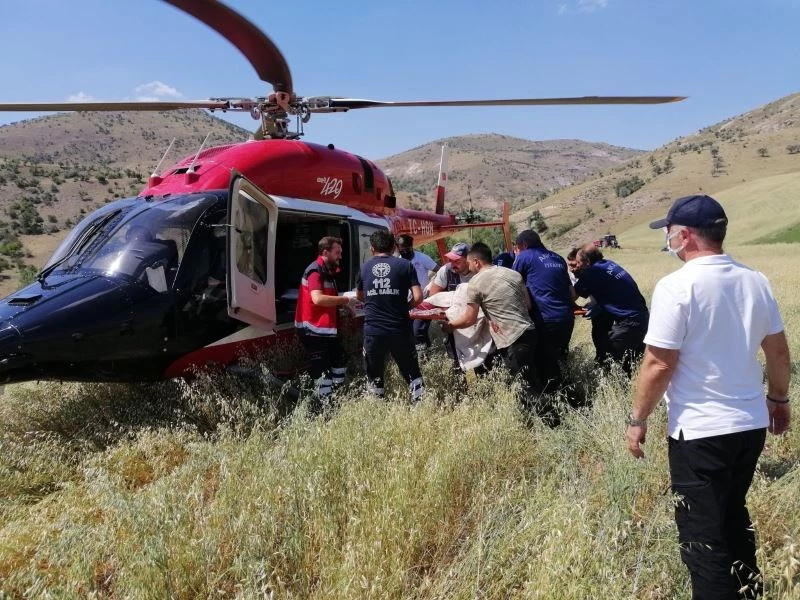 Alınan bilgiye göre, Çankaya ilçesine bağlı Kömürcü köyü girişinde balya yapan Şadi Y. (25) balya makinesine sıkıştı. Vatandaşların ihbarı üzerine olay yerine itfaiye ekipleri sevk edildi. İtfaiye ekipleri tarafından kurtarılan Şadi Y., tarlaya inen Helikopter Ambulans ile hastaneye sevk edildi.