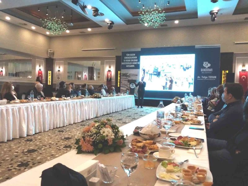 Bandırma Belediye Başkanlığı tarafından 10 Ocak Çalışan Gazeteciler günü sebebiyle kahvaltı program düzenledi. Kaymakam Engin Aksakal ve İlçede görev yapan yerel ve ulusal gazate ve ajans temsilcilerin katıldığı programda konuşan Belediye Başkanı Tolga Tosun, her zaman basının yanında olduklarını söyledi. Basının önemini çok iyi bildiklerini açıklayan Başkan Tosun, " Gazetecilik yapmak kolay değil. Biz basınımızı çok önemsiyoruz. Gazeteciler sayesinde eksik ve yanlışlarımızı görüyoruz. Biz Belediye olarak her zaman basınımızın yanında olduk ve olmaya da devam edeceğiz. Bu vesile ile tüm çalışan gazetecşletimizin 10 Ocak Çalışan Gazeteciler Gününü kutluyorum " diye konuştu. Başkan Tosun, konuşmasının ardından 2021 yılında belediyenin çalışmaları ve 2022 de yapılacak çalışmalar ile ilgili bir sunum yaparak gazetecileri bilgilendirdi. Toplantının sonunda programa katılan gazetecilere çeşitli hediyeler verildi.