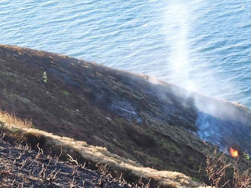 Balıkesir’in Bandırma İlçesinde iki noktada çıkan yangında 3 buçuk dekarlık çalılık ve otluk alan yanarak kül oldu.
