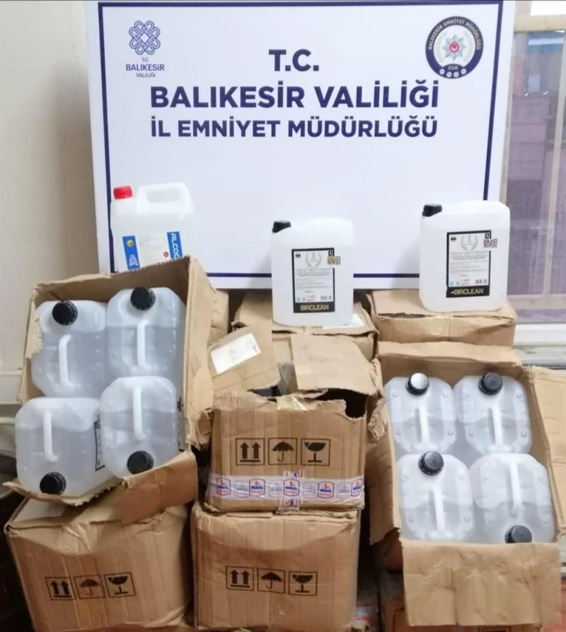 Balıkesir’in Bandırma ilçesinde şüpheli bir şahsın işyerinde sahte alkollü içki yaparak sattığı ihbarını alan polis ekipleri düzenlenen operasyonda çok miktarda etil alkol ele geçirdi.