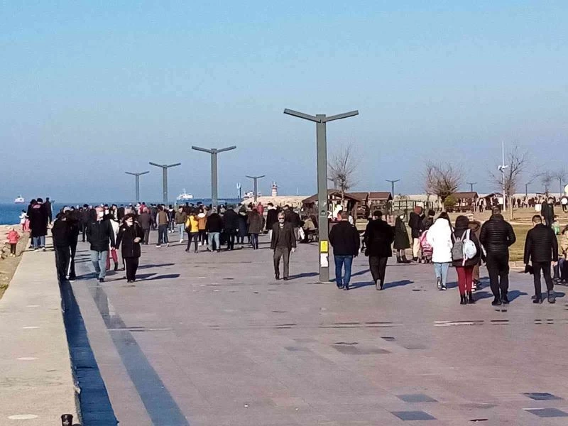 Bandırma’da güneşli havadada vatandaş sahile akın etti.