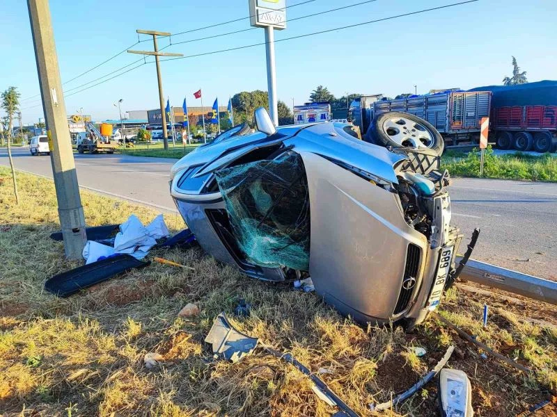Bandırma’da otomobil elektrik direğine çarptı: 3 yaralı