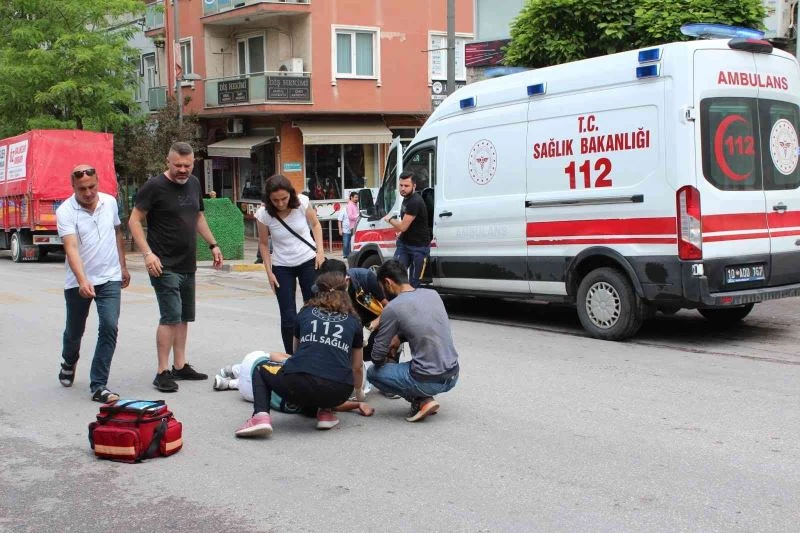 Balıkesir’in Bandırma ilçesinde yolun karşısına geçmeye çalışan kadına motosiklet çarptı.