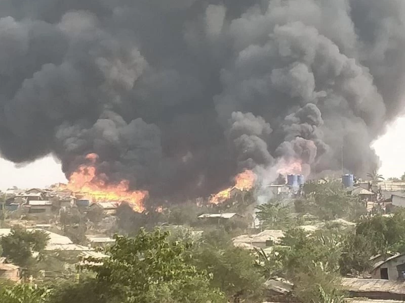 Bangladeş’in Cox’s Bazar şehrinde Arakanlı Müslümanların yaşadığı Ukiya Kampı’nın E-8 numaralı bloğunda bugün öğleden sonra çıkan yangında binlerce kişi evsiz kaldı. Cox’s Bazar ve çevredeki illerden gelen itfaiye desteğinin yanı sıra ordu mensupların da yardımıyla yangın 8 saat süren söndürme çalışmalarının ardından kontrol altına alındı. Yangın sırasında şiddetli esen rüzgarın yangının kontrol altına alınmasını zorlaştırdığı belirtildi.