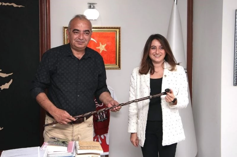 Kendilerini ziyareti nedeniyle mutlu olduğunu belirterek teşekkür eden Başkan Çetin Bozkurt, milletvekili Bankoğlu’na ziyareti anısına bir Devrek bastonu hediye etti.