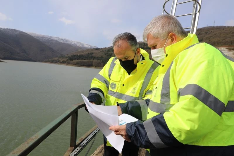 Bursa Büyükşehir Belediye Başkanı Alinur Aktaş, beraberindeki BUSKİ Genel Müdürü Güngör Gülenç ile birlikte Doğancı Barajına gelerek, mevcut su rezervi hakkında bilgi aldı. Son iki yılın kurak geçmesine rağmen vatandaşları bir gün bile susuz bırakmadıklarının altını çizen Başkan Aktaş, “Eğer zamanında derin kuyuları açmasaydık, daha 2020 yılının başında barajlarımızdaki su tükenecekti. Bu yaptığımız yatırımın ne kadar önemli olduğunu anlamamız için yeterli. Nilüfer ve Doğancı barajlarımızın kapasitesi 70 milyon metreküp. Şehrimizin hızlı nüfus artışı ve pandemi sebebiyle 2020 yılı merkez su tüketimimiz 145 milyon metreküp civarında gerçekleşti. Şuanda Doğancı Barajında yüzde 70, Nilüfer Barajında da yüzde 80 doluluğa ulaştık. Bugün itibariyle de kuyu sularını devre dışı bırakıyoruz. Projelerini teslim aldığımız ve ihaleye hazırlandığımız Çınarcık Barajı suyunun da Bursa’mıza getirilmesiyle inşallah 2050 yılına kadar susuzluk sorunumuz olmayacak. Ancak halkımızdan özellikle istirham ediyorum. Her ne kadar suyumuz olsa da rehavete kapılmadan tasarruflu kullanıma özen göstermeliyiz” diye konuştu.