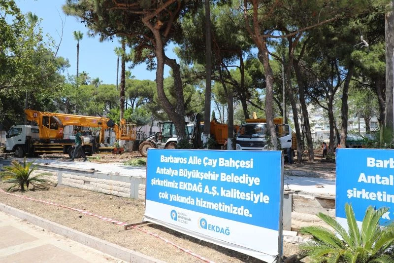 Barbaros Aile Çay Bahçesi Antalya Büyükşehir Belediyesi tarafından yenileniyor. Deniz ve çay kokusunun buluştuğu yerlerden biri olan çay bahçesi, hizmet kalitesini artırmak üzere daha şık ve konforlu hale getiriliyor. Yenileme çalışmaları hızla devam eden Barbaros Aile Çay Bahçesi, yenilenen yüzüyle sosyal tesis olarak Antalyalılara hizmet verecek.