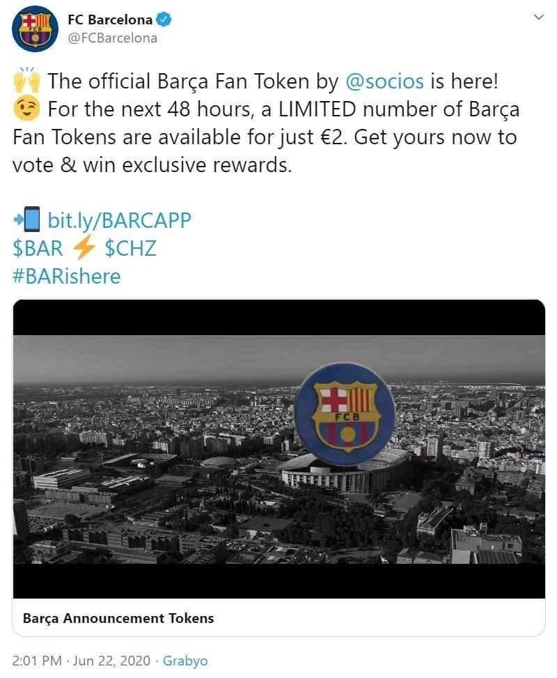 Futbol kulüplerinin çıkardığı ve aralarından Türkiye’den Galatasaray’ın da bulunduğu ekiplere İspanyol devi Barcelona da eklendi. Katalan ekibinin satışa çıkardığı kripto para, rekor ilgiyle karşılaştı. 2 saatlik zaman diliminde 1 milyon 300 bin Euro’luk satış yapılırken, en büyük ilgili ise Türkler gösterdi. 106 ülkede satışa çıkarılan kripto para, taraftarların kulüplerine özgü oylamalarda seçim yapmak, bir maç sırasında stadyumdaki LED panolarında görünmek, maçlara VIP olarak katılmak gibi dijital ve gerçek ödüller kazanma şansına sahip olacak. 600 bin adet olarak satışa çıkarılan ve 2 Euro sabit ücretten satılan paraya, beklenenden 5 kat fazla talep geldi. Kripto para alanlar, Camp Nou’daki soyunma odasının tasarımını kullanacakları oylarla belirleyecek. Socios.com’un işbirliğiyle gerçekleşen bu organizasyonda Juventus, Paris Saint-Germain, Atletico de Madrid, Roma, Galatasaray ve Independiente bulunmakta.