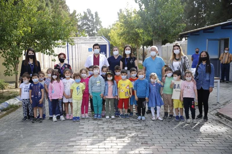 Can dostların bakımları, beslenmeleri ve rehabilitasyonları için günün her saati sahada olan Aydın Büyükşehir Belediyesi, çocukların hayvanlarla bir araya gelip beraber yaşama kültürü geliştirmelerine de özel önem veriyor. 4 Ekim Hayvanları Koruma Günü’nde de rehabilitasyon merkezinin kapılarını her hayvansevere olduğu gibi minik öğrencilere de açan Büyükşehir Belediyesi, böylelikle onların da yaşam hakkının önemini çocuklara aşılıyor. Bu doğrultuda rehabilitasyon merkezinde görevliler tarafından çocuklara hayvanlara nasıl davranılması gerektiği, onlara verilmesi gereken değer anlatıldı.