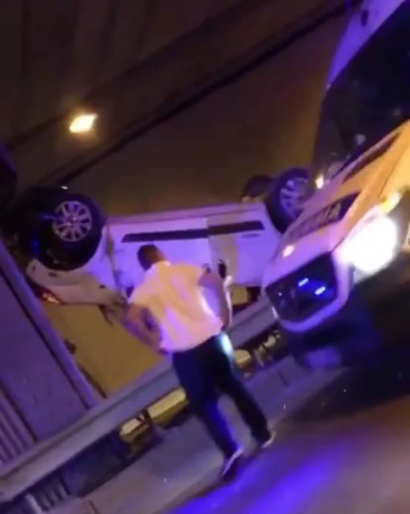 Kocaeli’de direksiyon hakimiyetini kaybeden sürücü önce bariyerlere ardından tünel ayağına çarparak takla attı. 4 kişinin yaralandığı kazada araç kullanılamaz hale geldi.