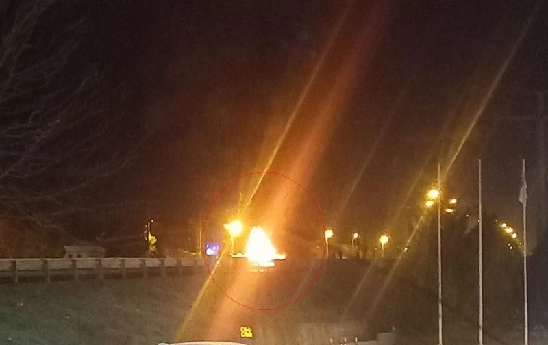 Bariyerlere çarpıp takla atan otomobil alev topuna döndü