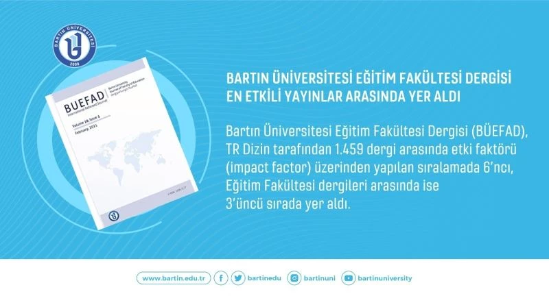 Bartın Üniversitesi Eğitim Fakültesi Dergisi (BÜEFAD), TR Dizin tarafından 1.459 dergi arasında etki faktörü (impact factor) üzerinden yapılan sıralamada 6’ıncı, Eğitim Fakültesi dergileri arasında ise 3’üncü sırada yer aldı.