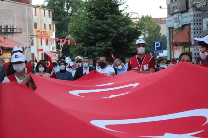 Bartın’da 15 Temmuz etkinlikleri ‘15 Temmuz Demokrasi Ve Milli Beraberlik Yürüyüşü’ ile başladı. Kemer meydanında buluşan vatandaşlar ellerinde Türk bayrakları ile 15 Temmuz etkinliklerinin gerçekleşeceği Cumhuriyet Meydanına yürüdü. Yürüyüşte gençler tarafından dev Türk bayrağı taşındı.