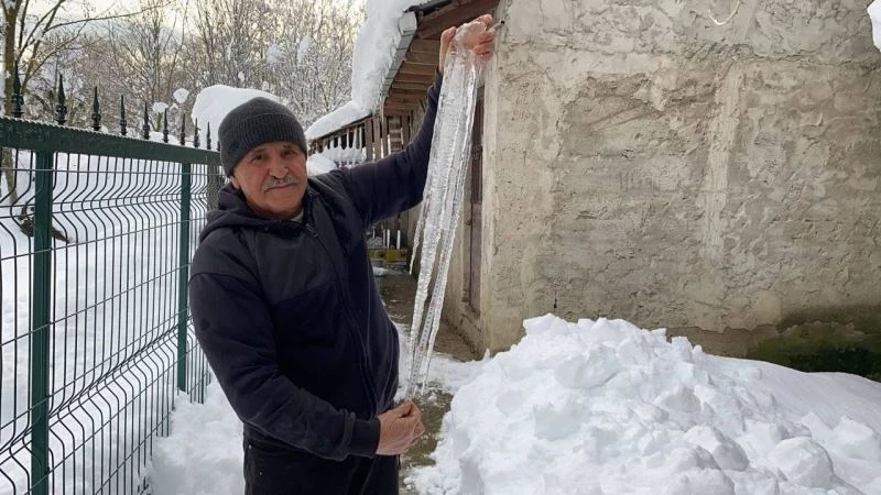 Köy merkezinde metre ile yapılan ölçümlerde kar kalınlığı 90 santimetre, çatılardan sarkan buz sarkıtları ise 84 santimetre olarak ölçüldü.