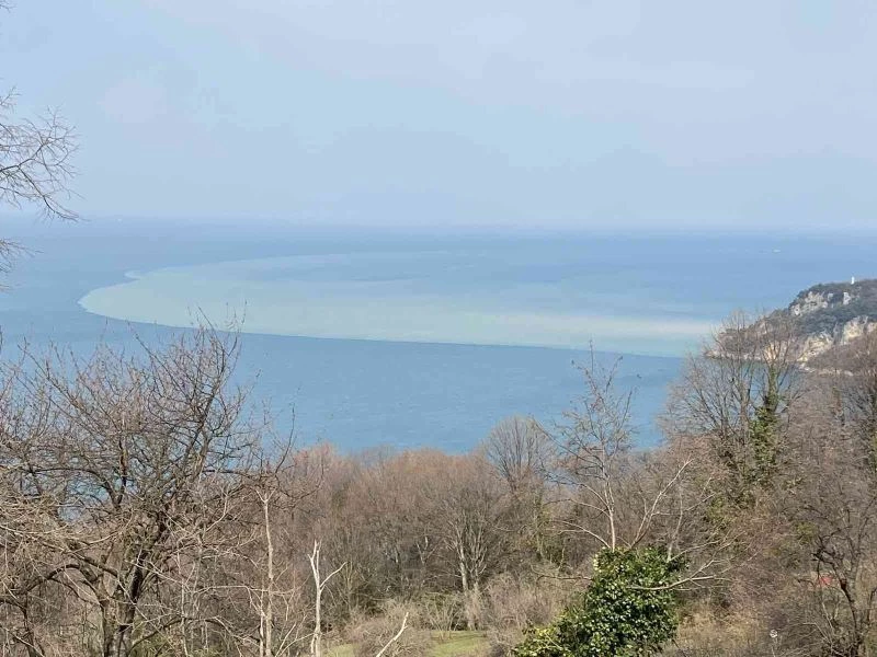 Geniş bir alanı kaplayan ve deniz yüzeyinin rengini değiştiren çamurlu sular dron ile görüntülendi.