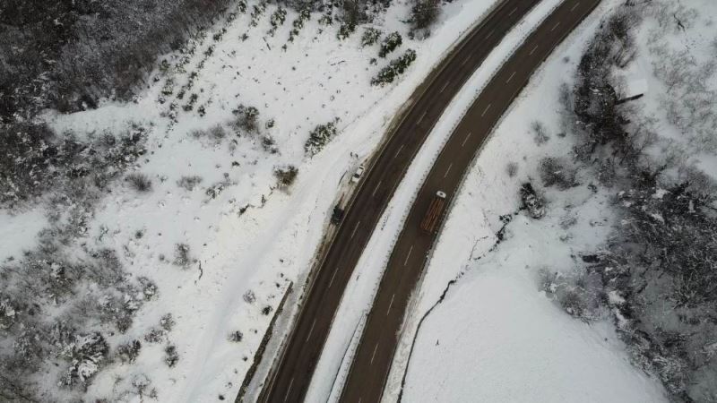 Meteoroloji Genel Müdürlüğü’nün uyarısının ardından Batı Karadeniz Bölgesi’nde kar yağışı etkili oldu. Bartın-Kastamonu sahil yolunun çevresi beyaz örtü ile kaplandı. Ekipler kar yağışının etkili olduğu bölgelerde karayolunun açık kalması için çalışmalarını sürdürüyor. Karadeniz sahil yolunun Bartın-Kastamonu bağlantısı arasında yer alan Amasra-Kurucaşile yolunda karın oluşturduğu manzara ise drone ile havadan görüntülendi.