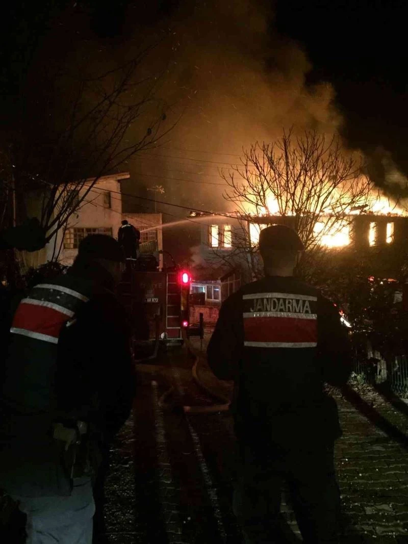 Bartın’a bağlı Güzelcehisar köyünde çıkan yangında alevlere teslim olan iki katlı ev kullanılamaz hale geldi.