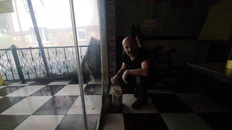 Bir esnaf işyerini sel sularından korumak için kapı ve camlarını alçıyla kapatmaya çalıştı. Alçı bulabildiğini anlatan esnaf, "Masa kurulan yerde kum torbası dağıtılsa iyi olurdu. Kumu nereden bulacağız? Torbayı nereden bulacağız? Su girerse diye alçı çekiyoruz. Ne derece etkili olur bilemeyeceğiz. Elimizde alçı vardı, onu değerlendiriyoruz" diye konuştu.
