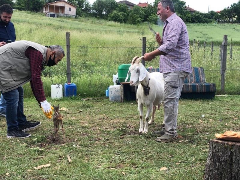 Bartın’da yavru karaca, kendisini emziren keçiyi anne olarak benimsedi