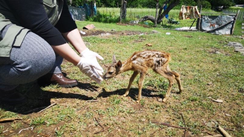 Duyarlı vatandaşlardan Bartın’ın Arıt mevkiinde derede yavru bir karacanın bulunduğu ihbarını alan DKMP ekiplerinin kurtardığı yavru karacanın veteriner hekimce muayenesi yapıldı. Yapılan kontrollerin ardından sağlık durumunun iyi olduğu, güçten düştüğü tespit edilen yavru karaca, keçi sütü ile beslenmesi ve annesinin yokluğunu hissetmemesi için keçi çiftliğine götürüldü.