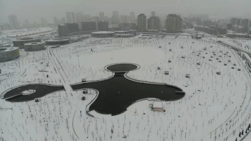 İstanbul’da beklenen kar yağışının etkili olmasıyla kentin birçok noktası kısa sürede beyaza büründü. Beyaza bürünen Başakşehir Millet Bahçesi dron ile görüntülendi.