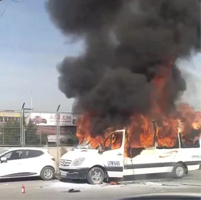 Başakşehir’de Bağcılar Oto Sanayi Sitesi önünde park halindeki servis minibüsü alev aldı. Alev topuna dönen minibüs, cep telefonu kamerası ile görüntülendi.