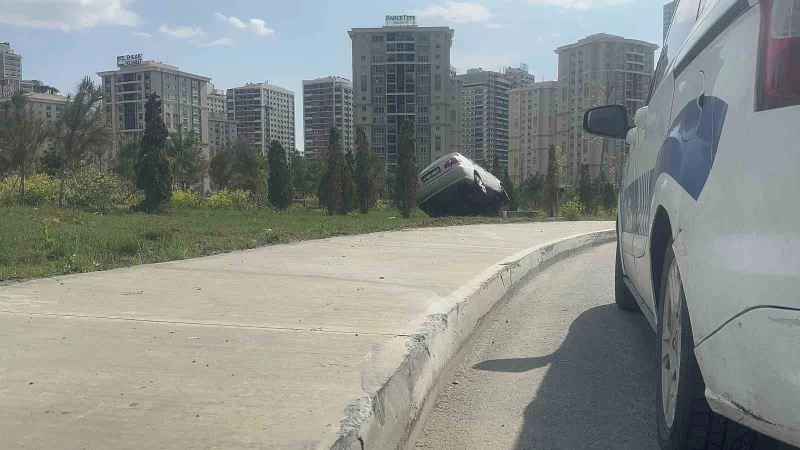 Başakşehir’de virajı alamayan sürücü çayırlık alana çıktı