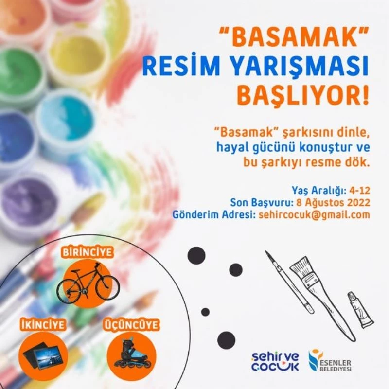 Esenler Belediyesi, çocuklara güvenli ve eğlenceli temalarda içerikler sunan Şehir ve Çocuk Youtube kanalının açılış şarkısı “Basamak”ı konu alan bir resim yarışması düzenliyor. Yarışmaya başvuru için son gün ise 8 Ağustos 2022 olarak belirlendi.