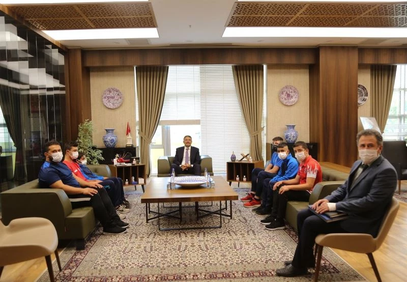 Vali Ali Çelik, Erkan Durak Üst Minik Erkek ve Kadınlar Türkiye Ferdi Boks Şampiyonası’nda 3. olarak bronz madalya kazanan Can Aşga ve Emir Cihan Kaya ile millî takıma seçilen güreşçiler Halil Sefa Turgut ve Ümit Kocagöbek’i makamında misafir etti.