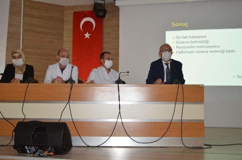 Hitit Üniversitesi Erol Olçok Eğitim ve Araştırma Hastanesi Başhekimi Prof. Dr. Mesut Sezikli, düzenlediği basın toplantısıyla pandemi sürecinde yapılan çalışmalar, alınan tedbirler hakkında bilgi verdi.