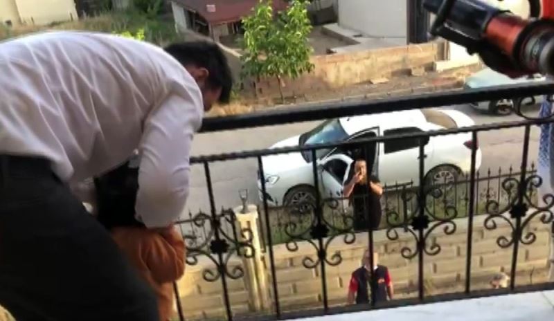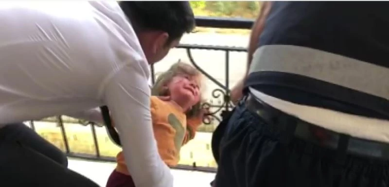 Başı balkon demirlerine sıkışan minik kızı itfaiye kurtardı