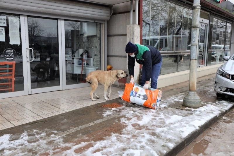 Başiskele Belediyesi, ilçede iki gündür etkili olan kar yağışı sonrasında yiyecek bulmakta zorlanan sokak hayvanlarının beslenmesine yardımcı oldu.