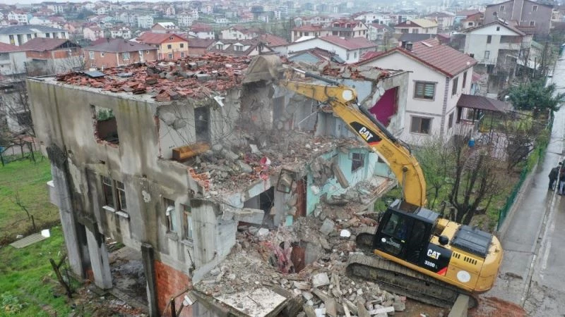 Başiskele’de depremde ağır hasar aldıktan sonra tehlike arz edecek şekilde duran bir bina belediyesi tarafından yıkıldı.