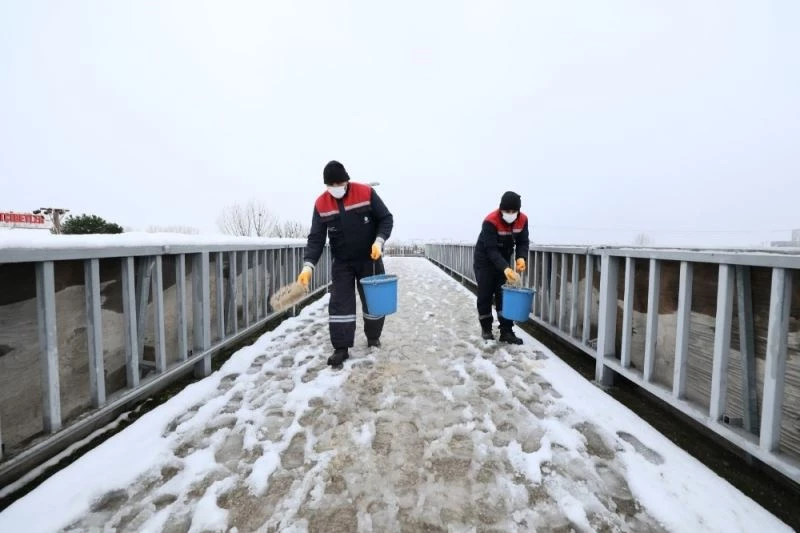 Başiskele Belediyesi karla mücadele ekipleri, ilçe genelinde yolların kapanmaması ve buzlanma olmaması için çalışmalarına devam ediyor.