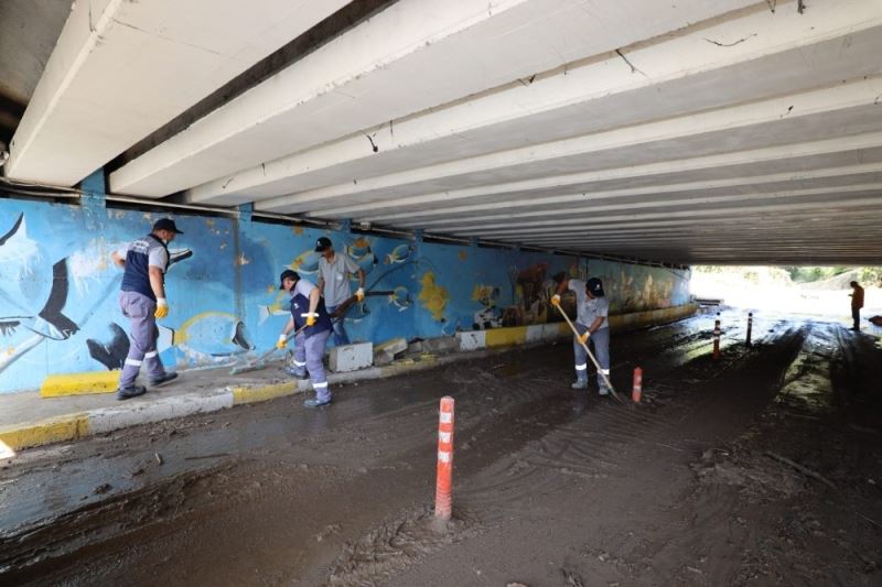 Şiddetli yağış sonrası yaşan sel ve su taşkınları sonrası Başiskele Belediyesi ilçenin dört bir tarafında temizlik çalışması gerçekleştirdi.