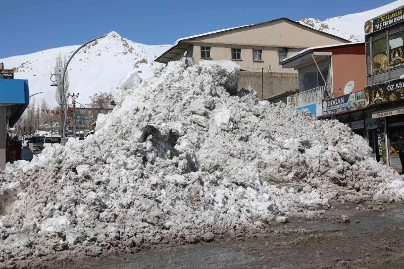 VAN – Van’ın Başkale Belediyesi ekipleri, mart ayına rağmen çarşı merkezinde biriken karı kamyonlarla ilçe dışına taşıyor.