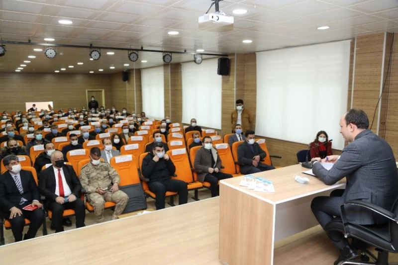 Anadolu Lisesinin toplantı salonunda yapılan toplantıda konuşan Kaymakam Solak, “Halkımıza daha iyi hizmet verebilmek, ilçemizin sorunlarını ve ihtiyaçlarını ilk elden dinlemek, korona virüs aşısı konusunda bilgilendirme yapmak için toplandık. Muhtarımız köyde ve mahallede önderlik yapan, iyi şeyler için halkın önünü açan kişidir. Yani devletin temsilcisi ve aynı zamanda halkın da temsilcisidir. Bu anlamda muhtarların, vatandaşlarımızın ihtiyaç ve sıkıntılarının tespitinde önemli rolleri vardır” dedi.