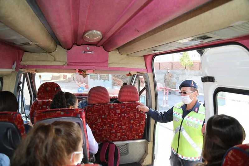 Başkale ilçesinde okulların açılmasıyla beraber kırsal mahallelerden merkeze öğrenci taşıyan okul servisleri, Van-Hakkari kara yolu üzerindeki Çamlık mevkiinde durduruldu. Başkale İlçe Jandarma Komutanlığı emrinde görevli 2. Jandarma Trafik Timi tarafından durdurulan servis sürücülerinin belgeleri kontrol edildi. Okul taşıt levhası, dur lambası gibi olması gereken donanımlarla emniyet kemeri, maske ve pandemi kurallarına göre oturma düzeni ile servis aracında dezenfektan olup olmadığı kontrol edilerek, kurallara uymayan öğrenci ve sürücülere uyarılar yapıldı.