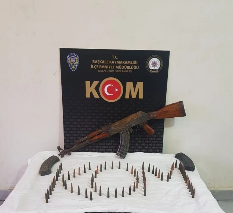 Başkale İlçe Emniyet Müdürlüğü ekipleri, gelen bir ihbar üzerine Barış Mahallesi kırsalında operasyon düzenledi. Arazide yapılan arama tarama sonucunda taşların arasına gizlenmiş bir adet AK 47 Kalaşnikof marka silah ile bu silaha ait 3 adet şarjör ve 76 adet fişek ele geçirildi.