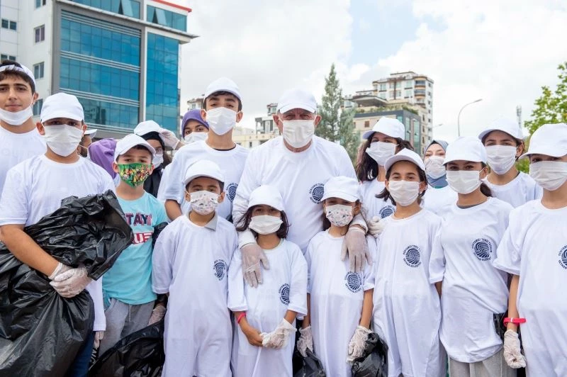Seyhan Belediye Başkanı Akif Kemal Akay, öğrencilerle birlikte çöp topladı
