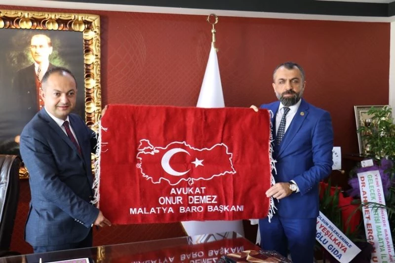Malatya Damızlık Koyun ve Keçi Yetiştiricileri Birliği Başkanı İhsan Akın, kısa bir süre önce Malatya Baro Başkanlığı´na seçilen Onur Demez’e hayırlı olsun ziyaretinde bulundu.