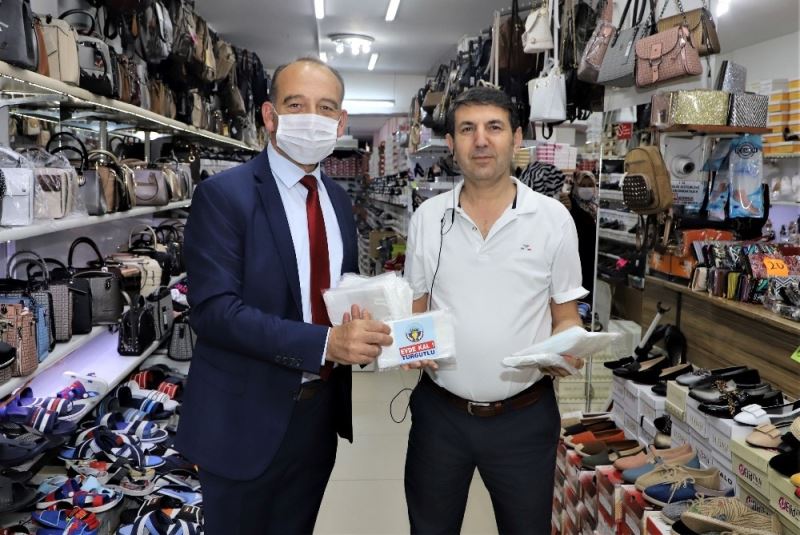 Turgutlu Belediye Başkanı Çetin Akın Ramazan Bayramı nedeniyle yasak öncesi son mesai gününde esnaf ve vatandaşlara maske hediye etti.