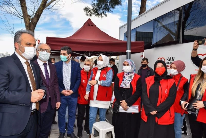 Büyükşehir Belediye Başkanı Alinur Aktaş, ‘Sen gönüllüsün, kan ver can ver’ sloganıyla Büyükşehir’in gönüllüleriyle birlikte kan verdi. Kent Meydanı’ndaki kan bağışına Kızılay Bursa Şube Başkanı Özcan Susmaz da katıldı.
