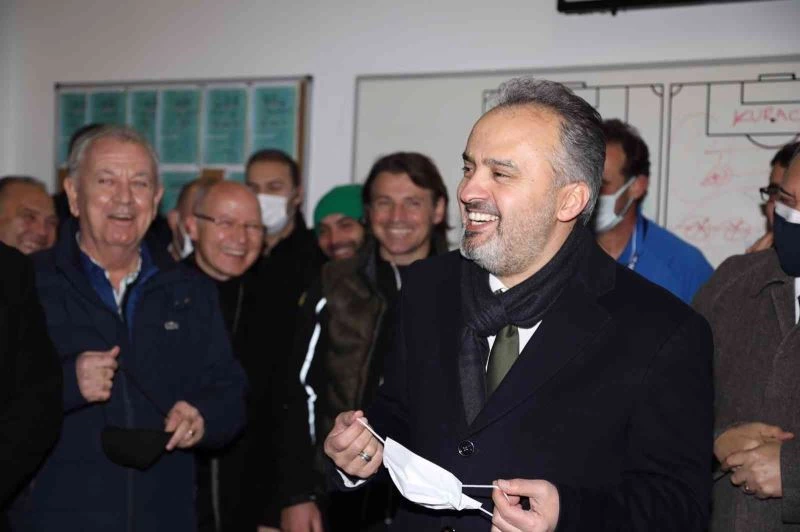 Bursa Büyükşehir Belediye Başkanı Alinur Aktaş, Altınordu’yu yenen yeşil-beyazlı futbolcuları yürekten kutladı. Aktaş, soyunma odasına giderek hem Tamer Tuna ile görüştü hem de toplu fotoğrafta yer aldı. Aktaş, “Helal olsun çocuklar. Tam gaz devam“ yorumunda bulundu.