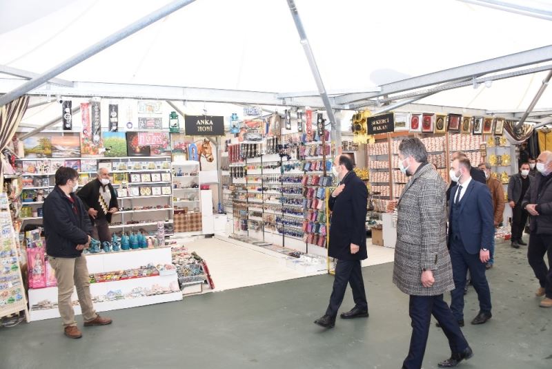 Konya Büyükşehir Belediye Başkanı Uğur İbrahim Altay, Konya tarihinin en önemli kentsel dönüşüm projelerinden olan Mevlana Çarşısı ve Altın Çarşı dönüşüm alanında incelemelerde bulunarak Altın Çarşı esnafını geçici iş yerlerinde ziyaret etti.