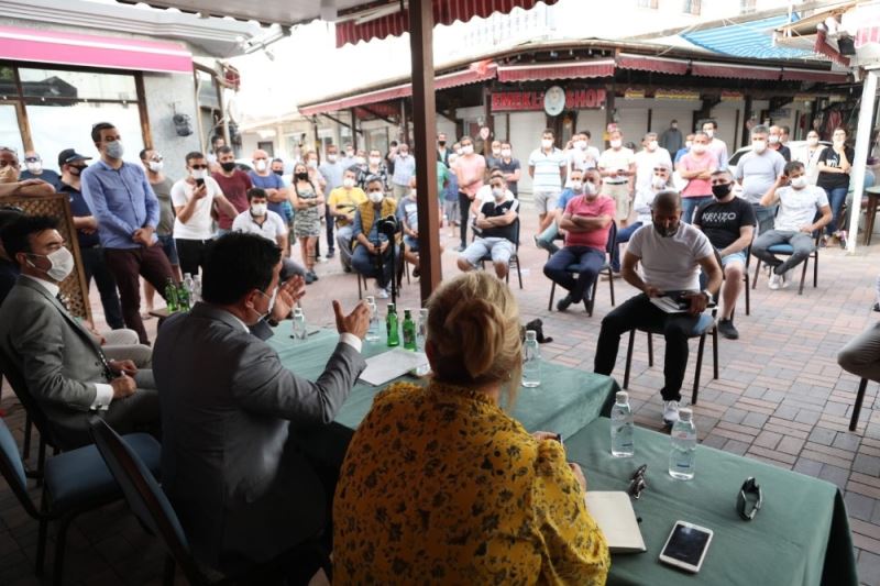 Daha sonra esnafın sorunlarını ve önerilerini dinleyen Başkan Aras, toplantının ardından bölgedeki çalışmalarla ilgili incelemelerde bulundu.